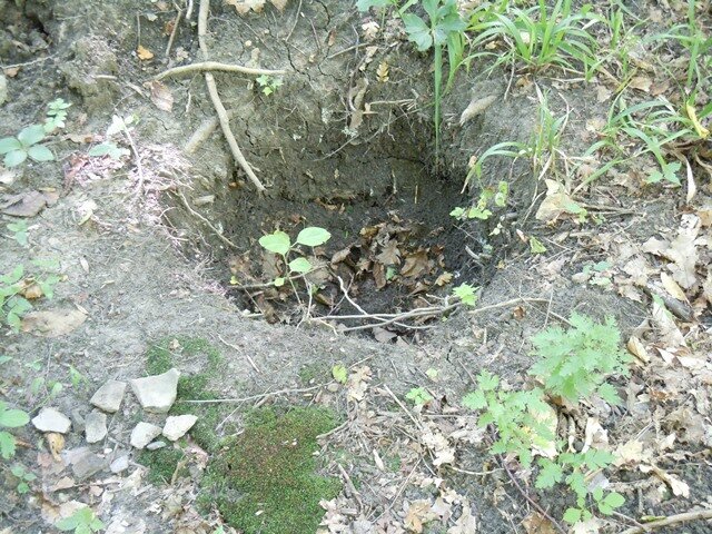 Это яма на поселении дольменной культуры Старчики 2. В левом нижнем углу видна выкинутая грабителями керамика. Они же за металлами охотятся.