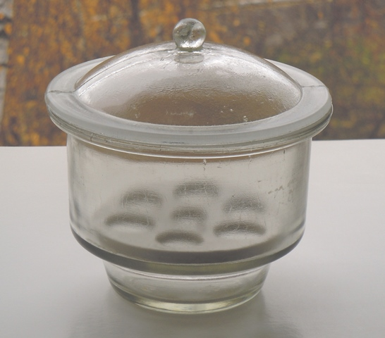 А этот эксикатор размером с таз. Имеет два разных фарфоровых вкладыша или вставки для установки на них бюксов (см. ниже), тиглей, выпарных чашек и другой лабораторной посуды.