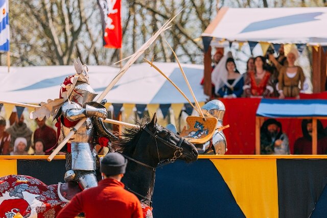 Просто хочу обратить внимание на неправильную технику участников на турнире Святого Георгия. На многих фотографиях видно, что носители шлема «жабья голова», он же «штехцойг», не откидываются назад в момент удара копьями. В один момент это может привести к тому, что голова рыцаря будет пронзена щепкой или копьём.