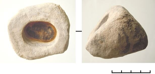 На самом деле, это природная форма. Повторное изучение позволило сделать вывод, что это окаменевшая кость, со всех сторон покрытая плёнкой органогенного известняка. Видимые на поверхности предмета маленькие кружочки и спиральки являются раковинами древнего планктона.